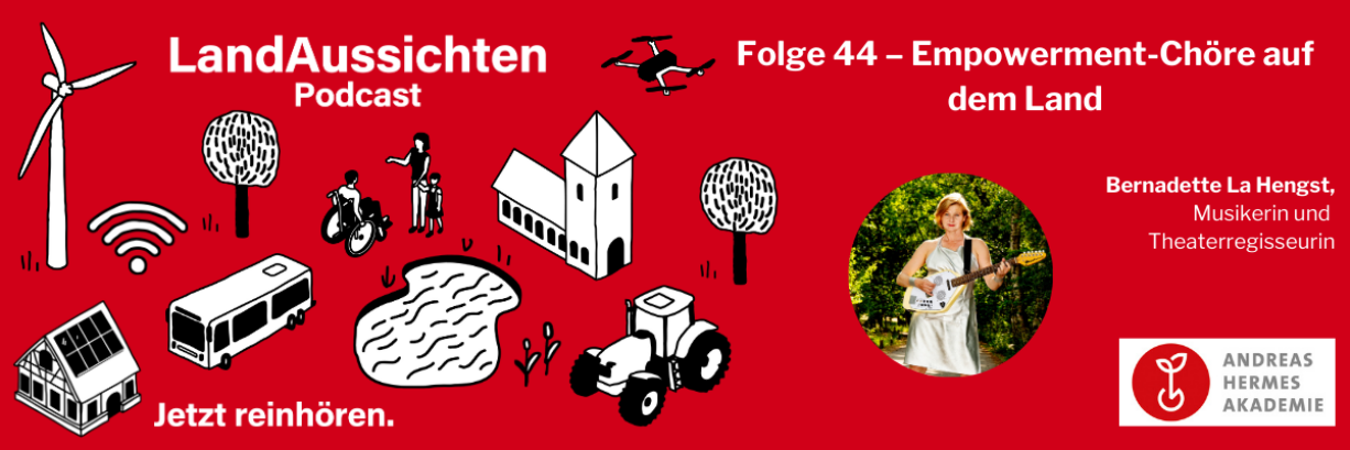 Ob „Imagine“ von John Lennon, „I’m still standing“ von Elton John oder „Lean on Me“ von Bill Withers: Die verbindende und stärkende Kraft der Musik wurde schon von verschiedenen Künstler:innen über Genregrenzen hinweg vielfach besungen. Ihre Wirkung entfaltet sich dabei besonders, wenn man gemeinsam musiziert. In unserer neuesten Folge LandAussichten dreht sich daher alles um Chorarbeit im ländlichen Raum: Welche Rolle kann Musik für Dorfgemeinschaften und deren Entwicklung spielen? Wie kann gemeinsames Singen Leerstand kreativ bespielen, den Zusammenhalt stärken und neue Zukunftsvisionen entstehen lassen?
