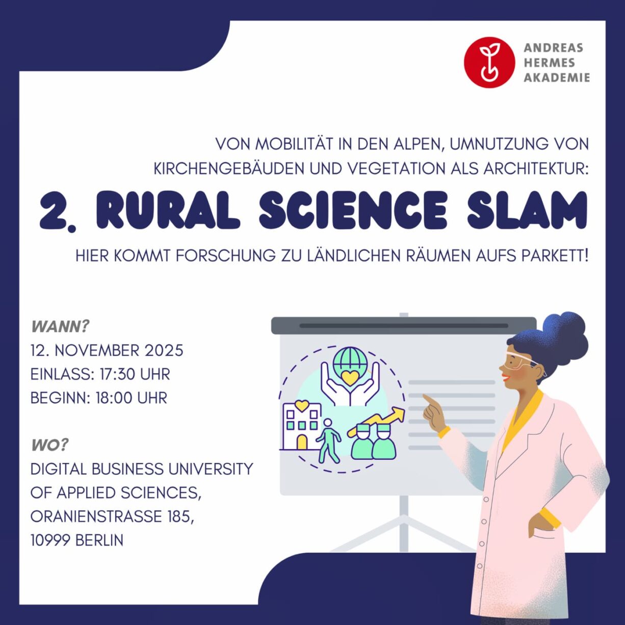 Wenn man sich dafür nur nicht durch dicke Bücher kämpfen müsste. Gut, dass wir eine unterhaltsame und informative Lösung im Gepäck haben: Beim zweiten Rural Science Slam erwarten euch eine Vielzahl spannender Vorträge/Slams über Leben, Fragestellungen und Perspektiven auf das Land – und das kurz, witzig und direkt auf den Punkt gebracht.