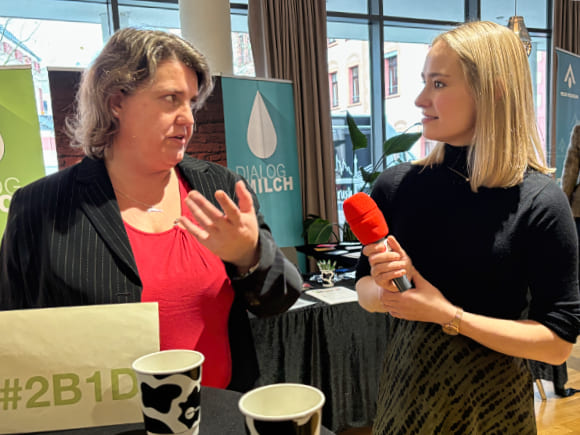 Wie viel diese beiden Branchen gemeinsam haben, wurde in der Brown-Bag-Diskussion von DIALOG MILCH wieder einmal eindrucksvoll deutlich. Die erste Assoziation von Katharina Leyschulte und Stephanie Tatenhorst zur Zukunft der Pressearbeit und zum Tagungsmotto „Who pays?“ wurde gleich zu Beginn erörtert: Die Bereitschaft der Kunden, für gute Leistungen zu bezahlen. Eine Paywall beim Zugriff auf Online-Nachrichten schaffe ein verlässliches Finanzierungsmodell für Journalismus, das zudem unabhängig von Werbemärkten sei, so Stephanie Tatenhorst, denn Journalismus koste Geld – für Recherche, Redaktion, Fact-Checking, Technik. Genauso erwarte die Landwirtschaft eine angemessene Honorierung für die Erzeugung unserer Lebensmittel. „Wir erfüllen hohe technische Standards“, erläuterte Katharina Leyschulte, „viel wichtiger aber ist unser seit Generationen gelebtes Herzblut für die Landwirtschaft.“ „Wir laden alle interessierten Menschen dazu ein, sich bei uns auf dem Hof darüber zu informieren, wie unsere Kühe leben. Und ich appelliere an sie, sich dann bewusst dafür zu entscheiden, für Tierwohl mehr Geld auszugeben.“