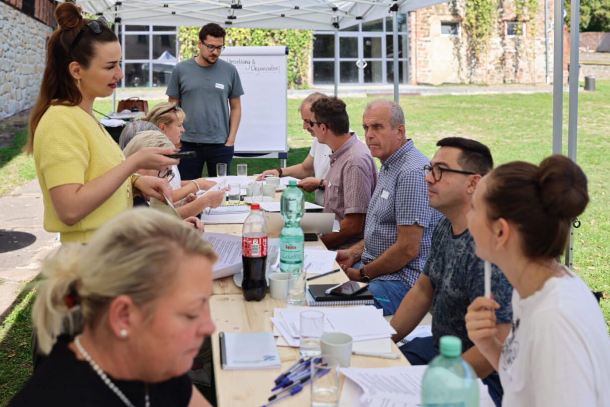 In enger Kooperation mit der Gemeinde Hohe Börde und Bürgermeister Andreas Burger trafen sich rund 15 Bürger:innen mit und ohne Migrationsgeschichte aus der Region, um Ideen für ein offenes und lebendiges Dorfleben zu entwickeln. Schon beim Ankommen war klar: Hier ging es nicht um trockene Theorie, sondern um Austausch auf Augenhöhe. Offene Methoden, viel Raum für persönliche Erlebnisse und gemeinsames Nachdenken machten den Workshop zu einem Ort voller Begegnung und Ideen.