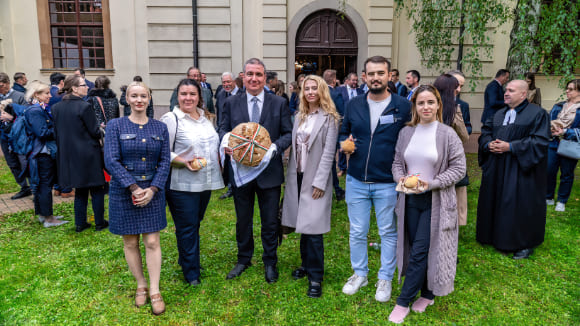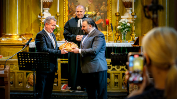 Feierliche Staffelstab-Übergabe in der Form des FriedensBrotes an Bulgarien.