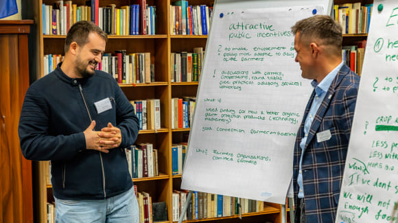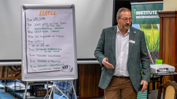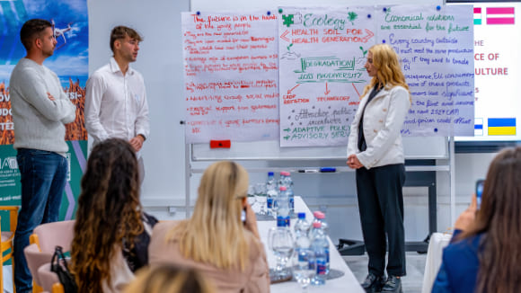 Der Workshop-Tag am 7. Oktober brachte die Gruppe schnell in einen lebendigen Austausch. Unter dem Leitmotiv „The Future Balance between Food Sovereignty and Sustainability“ entwickelten die jungen Teilnehmenden gemeinsam Ideen, teilten Erfahrungen und setzten erste Impulse für die agrar- und gesellschaftspolitische Diskussion. Sie erarbeiteten dazu jeweils Thesen zu sozialen Herausforderungen, ökologischen Themen und wirtschaftlichen Perspektiven – angelehnt an den drei Seiten des Nachhaltigkeitsdreiecks.
