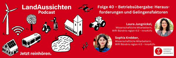 In unserem Podcast werfen wir seit Juli 2022 einen genauen Blick auf die vielfältigen Themen und Fragestellungen, die die ländlichen Räume in Deutschland beschäftigen. Ehrenamt, Landnutzung, Zukunftsbilder oder neue Narrative – gemeinsam mit Expertinnen und Experten aus den ländlichen Räumen werden diese und weitere Bereiche genauer unter die Lupe genommen.